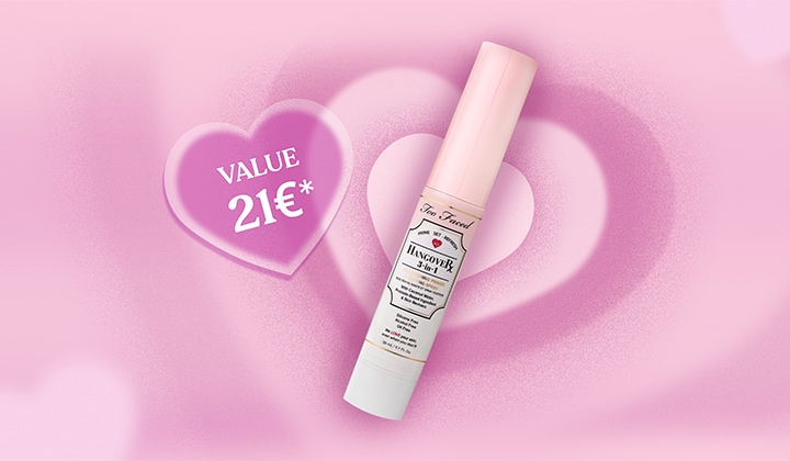 1No code needed — gift automatically applied at checkout. Valid until 31st March, 11:59 pm. Get a Free Travel Size Hangover 3-in-1 Primer & Setting Spray 30ml (Value 21€) with purchases +59€. Until Stock lasts. Available exclusively at www.toofaced.eu.
